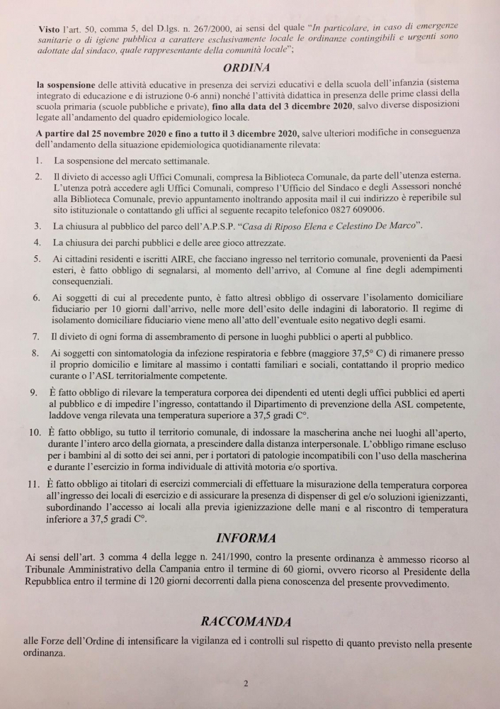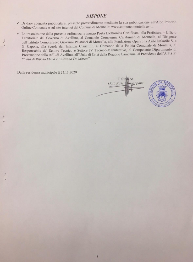 ORDINANZA SINDACO DI MONTELLA
